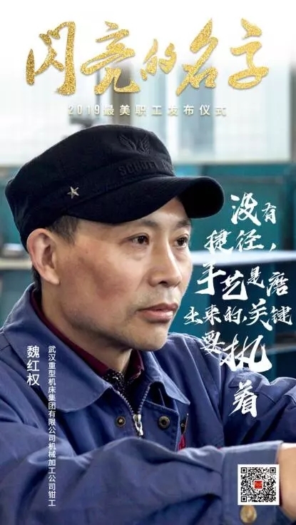 在2019年全國“最美職工”發(fā)布儀式現場(chǎng),中國兵器工業(yè)集團武漢重型機床集團有限公司機械加工公司鉗工魏紅權,與來(lái)自全國各地的另外8名獲獎?wù)吆?個(gè)集體,共同接受了中宣部、中華全國總工會(huì )授予的這一殊榮。