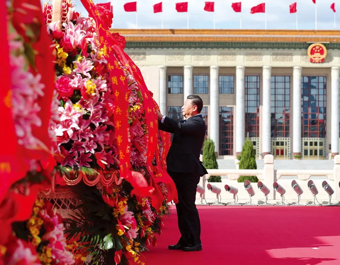 2018年9月30日上午,黨和國家領(lǐng)導人習近平、李克強、栗戰書(shū)、汪洋、王滬寧、趙樂(lè )際、韓正、王岐山等來(lái)到北京天安門(mén)廣場(chǎng),