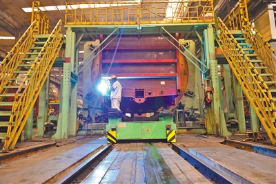 中國兵器工業(yè)集團一機集團北方創(chuàng )業(yè)公司生產(chǎn)線(xiàn)開(kāi)足馬力生產(chǎn)鐵路車(chē)輛產(chǎn)品。日前,為圓滿(mǎn)完成1200臺C70E(H)型通用敞車(chē)生產(chǎn)任務(wù),該公司不斷創(chuàng )新生產(chǎn)組織模式,新、舊兩條生產(chǎn)線(xiàn)全面啟動(dòng),白、夜班雙班組織生產(chǎn),有效保障生產(chǎn)進(jìn)度。(王磊 攝) |